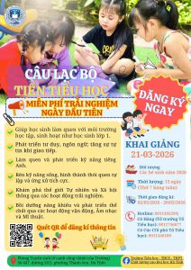 THÔNG BÁO TUYỂN SINH KHÓA TIỀN TIỂU HỌC NĂM 2026